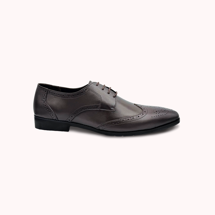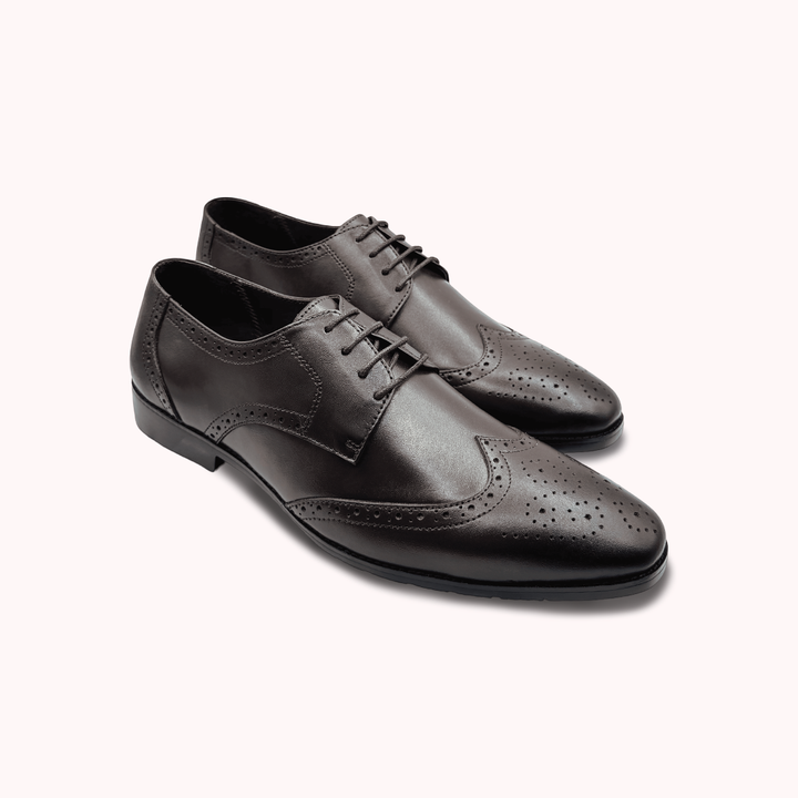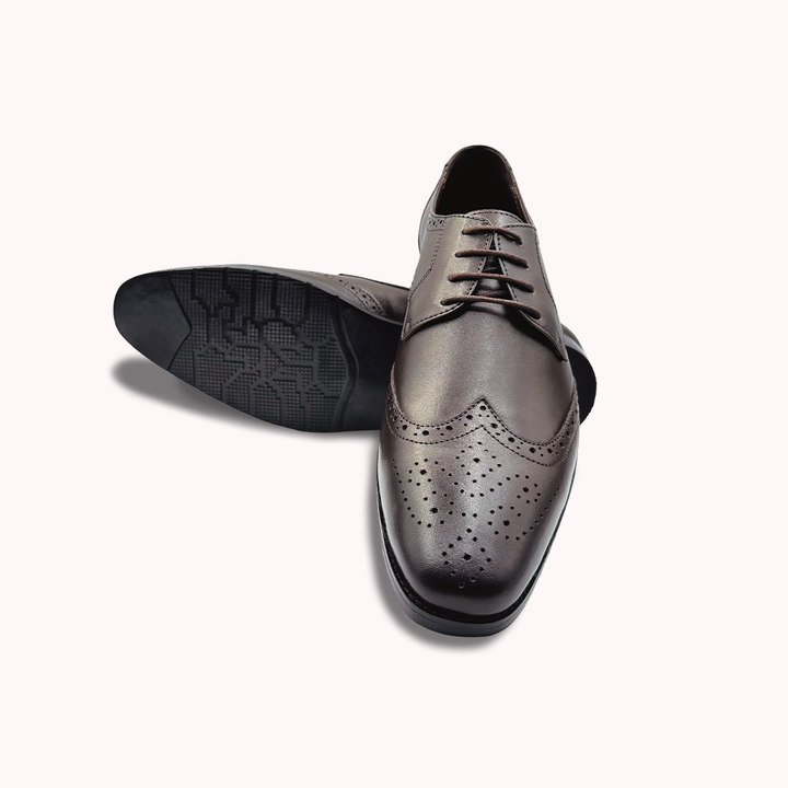 Step up your style with these classic wingtip brogue derby shoes. Made from high-quality tan brown leather, these elegant dress shoes feature intricate perforations and a sophisticated design, perfect for formal events, business meetings, or any occasion where you want to make a statement. The durable sole provides comfort and support, while the timeless look ensures they'll be a staple in your wardrobe for years to come.