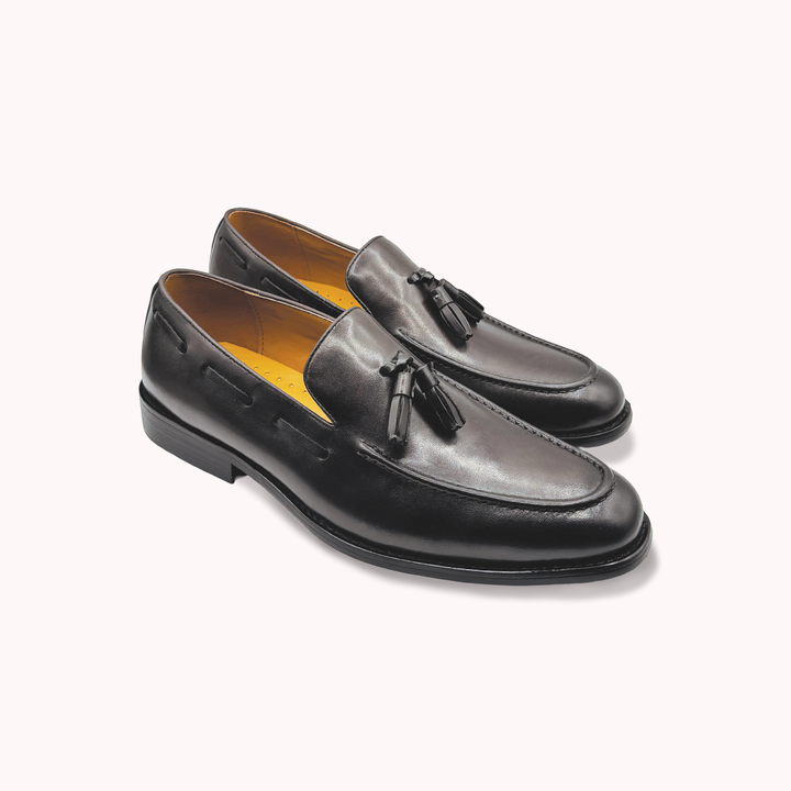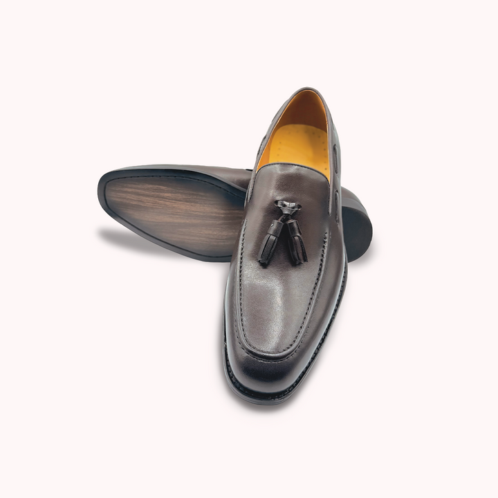 Add a classic touch to your style with these elegant dark brown tassel loafers. Made from high-quality leather, these shoes feature stylish tassels on the vamp, adding a sophisticated and unique detail. Perfect for both formal events and business casual wear, their slip-on design offers convenience, while the durable sole ensures comfort for all-day wear.