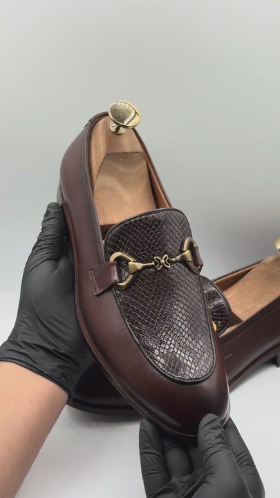 Exotic Brown Snake-Skin Texture Horsebit Leather Shoes for Men-M16