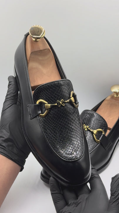 Exotic Black Snake-Skin Texture Horsebit Leather Shoes for Men-M16