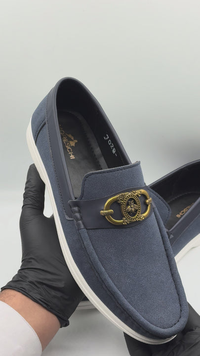 Men's Elite Midnight Blue Suede Loafers Golden Crest LP04