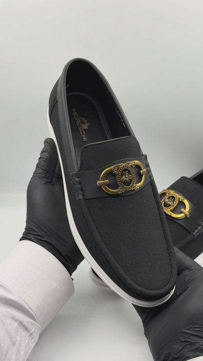Men's Elite Black Suede Loafers Golden Crest LP04