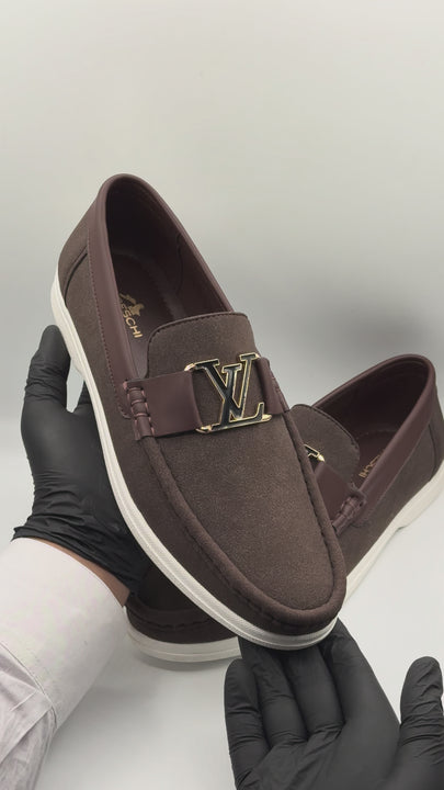 Premium Slip-on Chocolate Brown Suede Leather Loafers with LV Buckle LP03