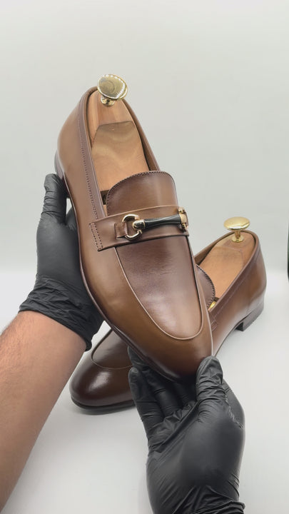 Hardware: Iconic gold-tone metal bit detail for a luxury finish.