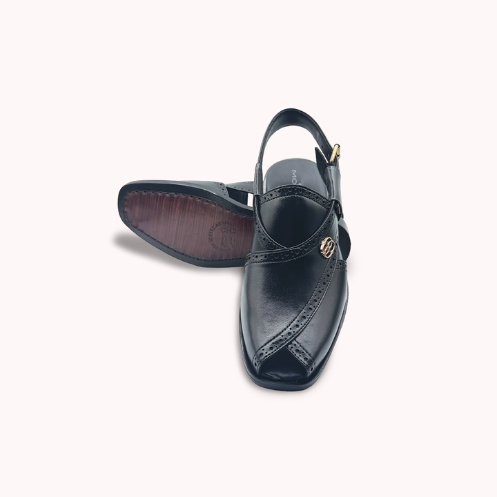Step into luxury with our Regal Black Edition Peshawari Chappal. Crafted with soft Leather Soul and sleek Black Leather, this bold design turns the iconic Peshawari Chappal into a statement piece of elegance and prestige.